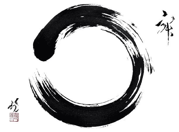 In the sixth century a text named the Shinhinmei refers to the way of Zen as a “circle of vast space, lacking nothing and holding nothing in excess”. At first glance the ancient ensō symbol appears to be nothing more than a miss-shaped circle but its symbolism refers to the beginning and end of all things, the circle of life and the connectedness of existence. It can symbolize emptiness or fullness, presence or absence. All things might be contained within, or, conversely, excluded by its boundaries. It can symbolize infinity, the “no-thing”, the perfect